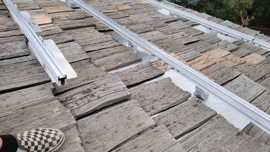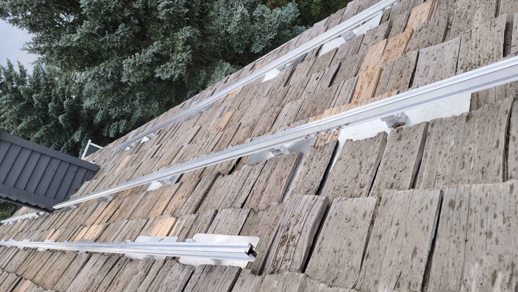 Once the panels were available we then ran into various other shortages including the shake flashing. But finally the big day came in the early fall. About 3 months behind plan, and production would be lost for the peak summer months, but I figured it wasn’t going to be any better next year so might as well go ahead.