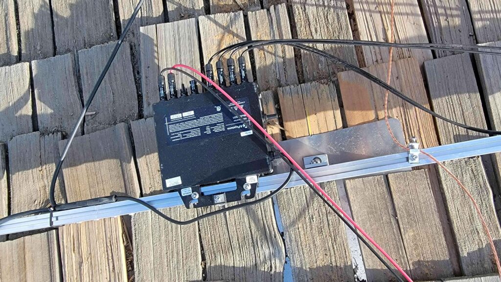 Next day was getting the rest of the rails and the micro-inverters starting to get laid out.
